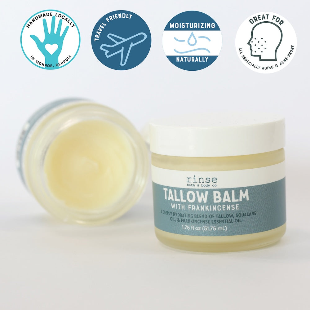 Deeply moisturizing blend of 100% grass-fed Tallow, Squalane Oil, & Frankincense Essential Oil.